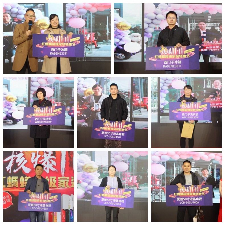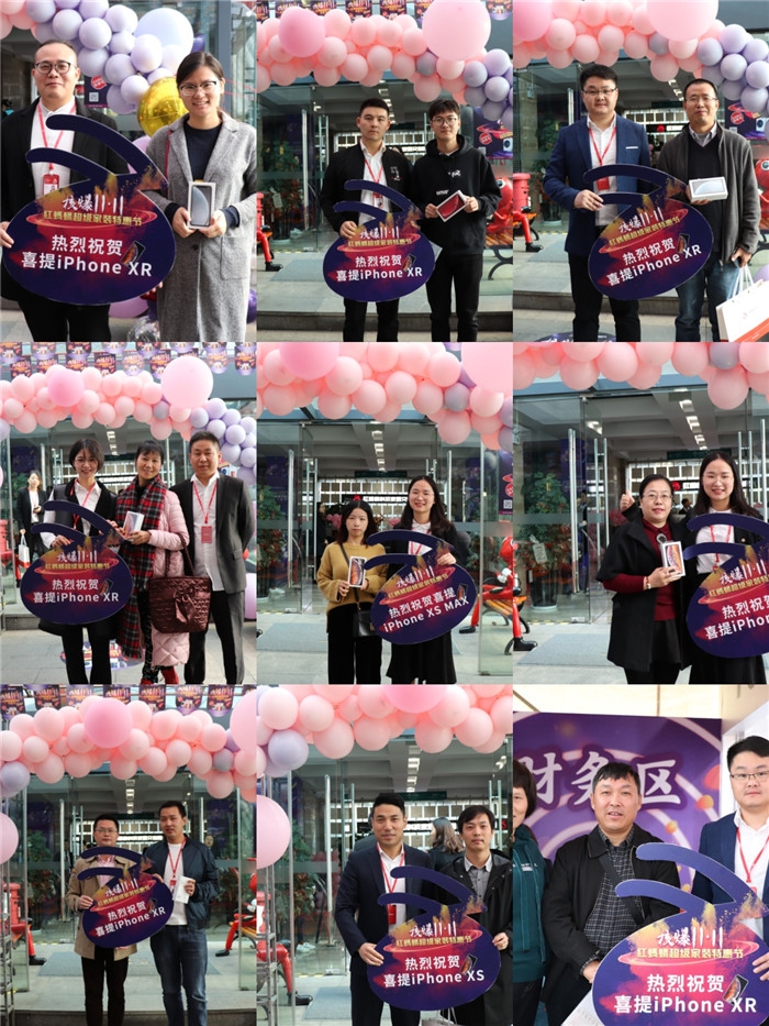 财务区领取iPhone手机的人潮也是一波接一波,现场准备的iPhone XR/XS/XS MAX手机现货下午活动还没结束就已经全部领完,现场人潮如织、签约不断。最具人气的环节莫不过于抽奖环节,每一个奖品都是红蚂蚁装饰为客户精心挑选、准备,还额外增加了一些精美奖品送给积极互动的客户们。