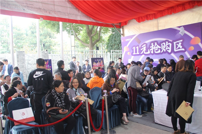 活动现场除了火爆场面,还有很多亮点。下午16:00开始的11元限时限量抢购名品马桶、无线智能开关环节,每天从中午12点就开始排起了长龙,甚至有一位红蚂蚁装饰的老客户从早上7点30就已经在现场等候,她调侃道比红蚂蚁的保洁阿姨还来的早,可想而知现场的人气有多高,同样红蚂蚁装饰为了让客户安心的排队等候还特意准备了椅子与茶点供客户们排队享用。