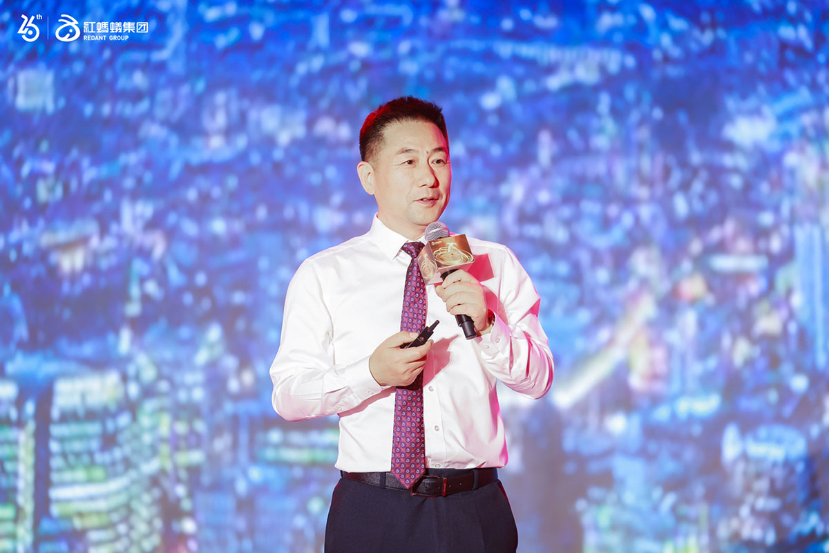 晚宴现场,董事长李荣回顾了红蚂蚁26年的发展历程,并重磅发布“AI智装战略”主题演讲:以 AI 赋能家装,打造可视化工地交付体系,让客户深度参与,成为工地第 10 重品质监管者,重塑设计、施工、交付全链路的家装交付体验。