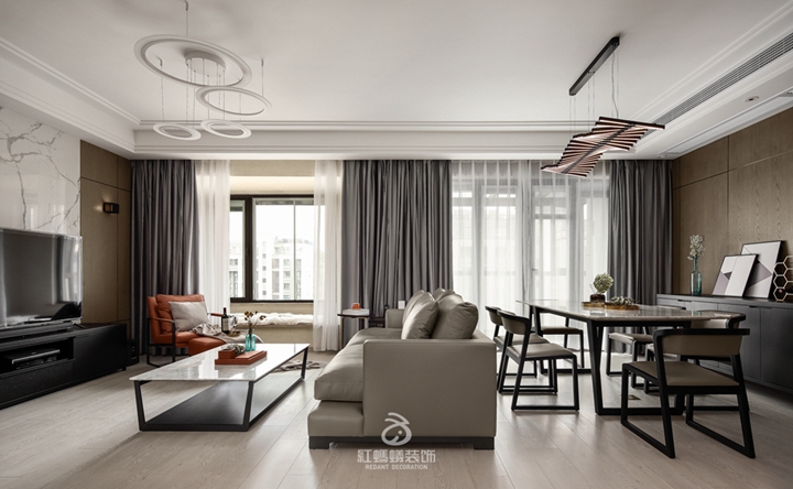 现代风格即现代主义风格,现代主义也称功能主义,顾名思义,重视功能和空间组织,注重发挥结构构成本身的形式美,造型简洁,反对多余装饰,尊重材料的特性。现代风格的居室,无论房间大小,一定要显得宽敞。不需要繁琐的装潢和过多家具,在装饰与布置中最大限度的体现空间与家具的整体协调。今天小编带领大家一起欣赏一套出自苏州装修公司红蚂蚁装饰的现代风格实景案例,喜欢大家喜欢。