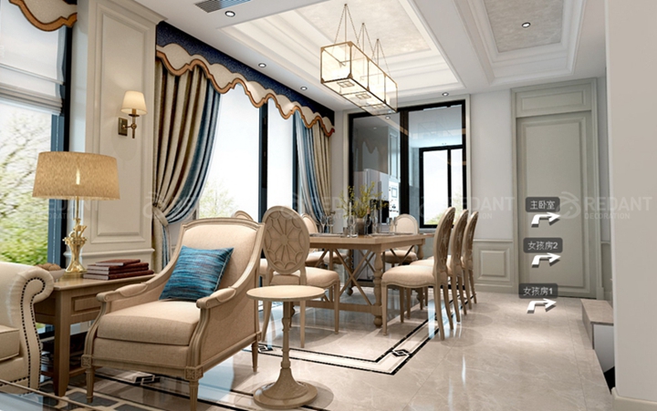 本案为美式风格;美式风格家居就如同美国独立风格一样,讲究的是通过生活经历去积累自己对艺术的启发以及对品味的喜好,从中摸索出独一无二的美学空间。
